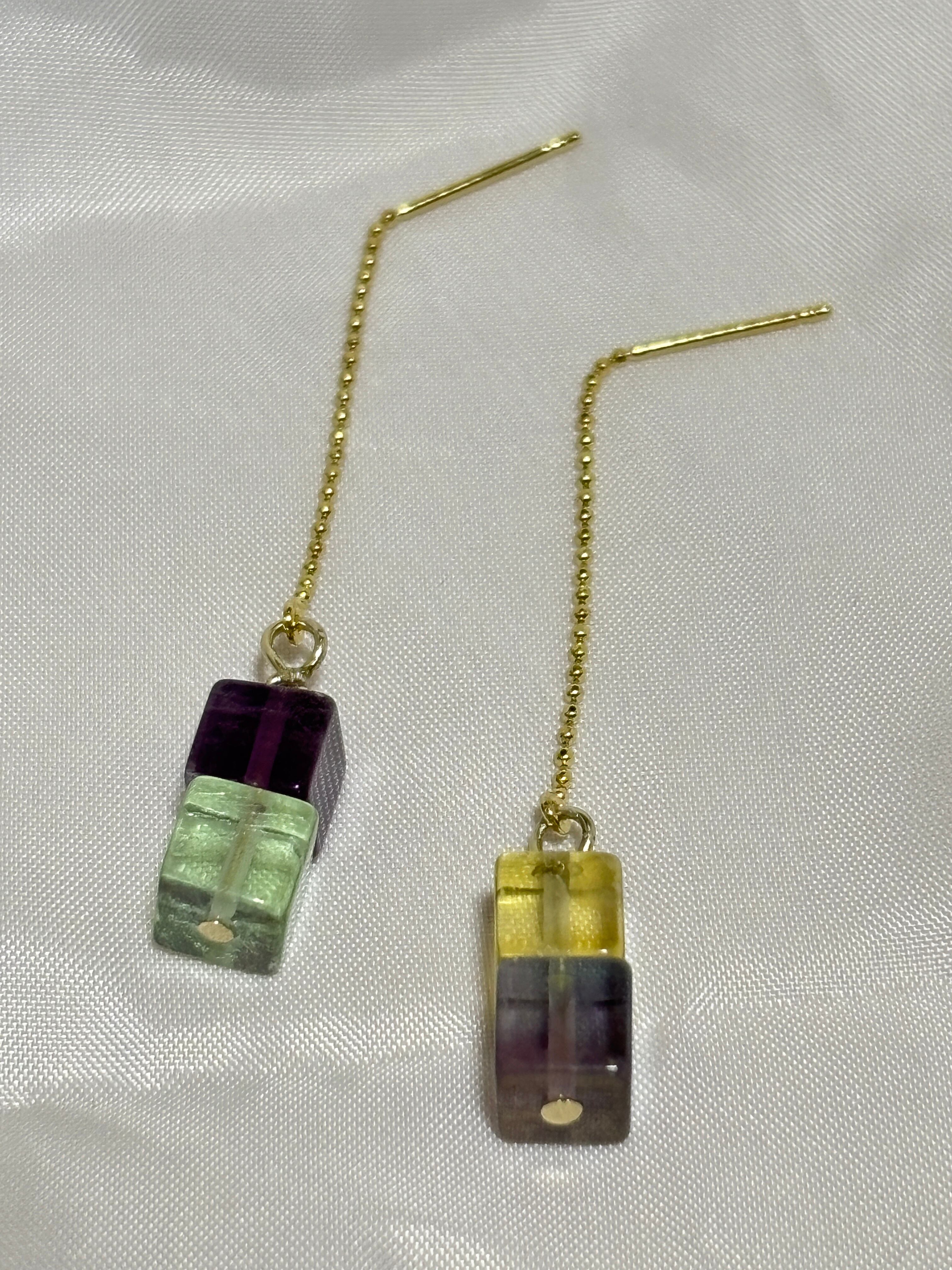 カラフルなパワーストーンをかわいいお守りピアスにしました。