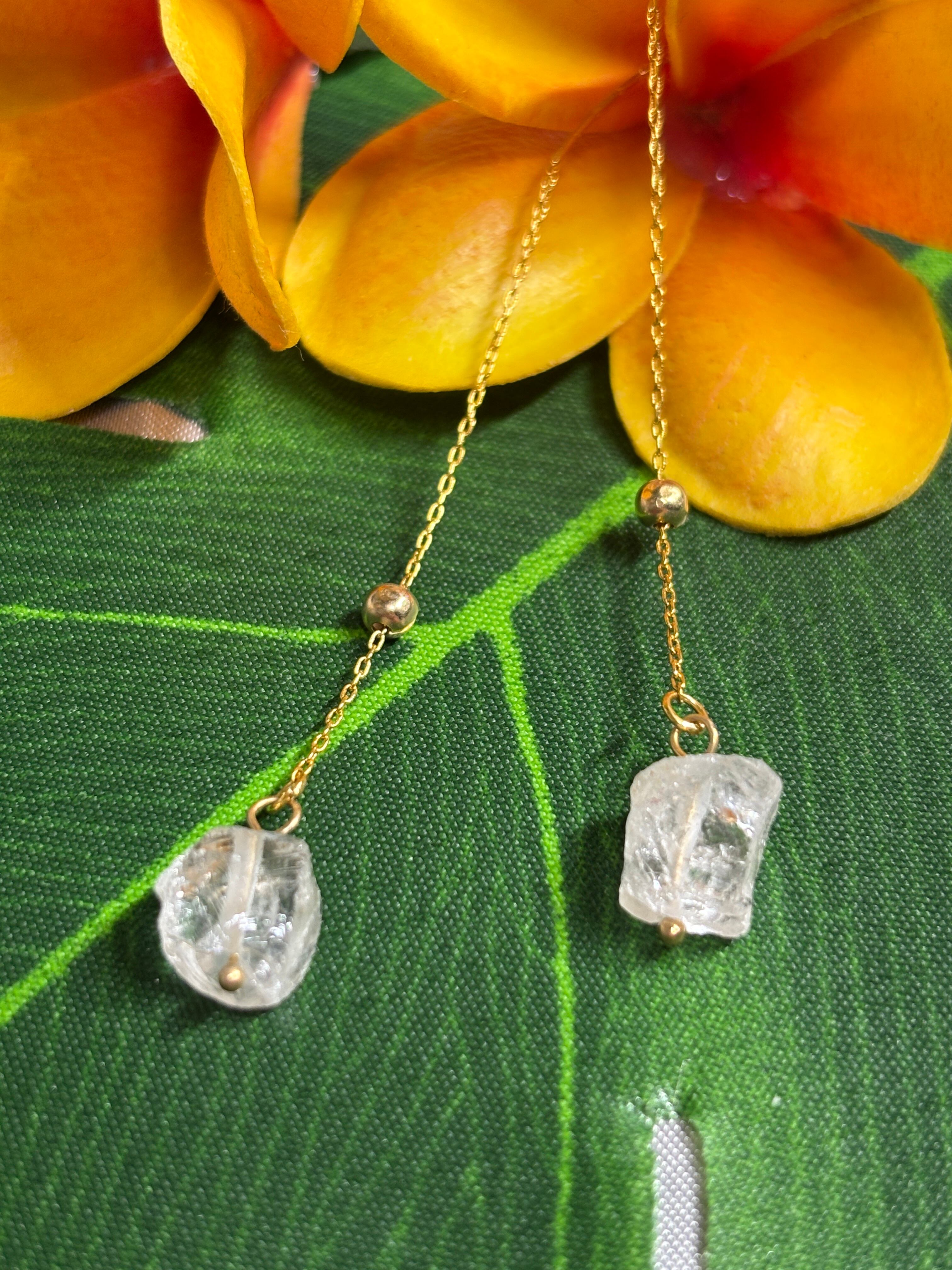 - 天然のクリスタルが放つ独特の輝きは、周囲の光を反射し、耳元を華やかに彩ります。