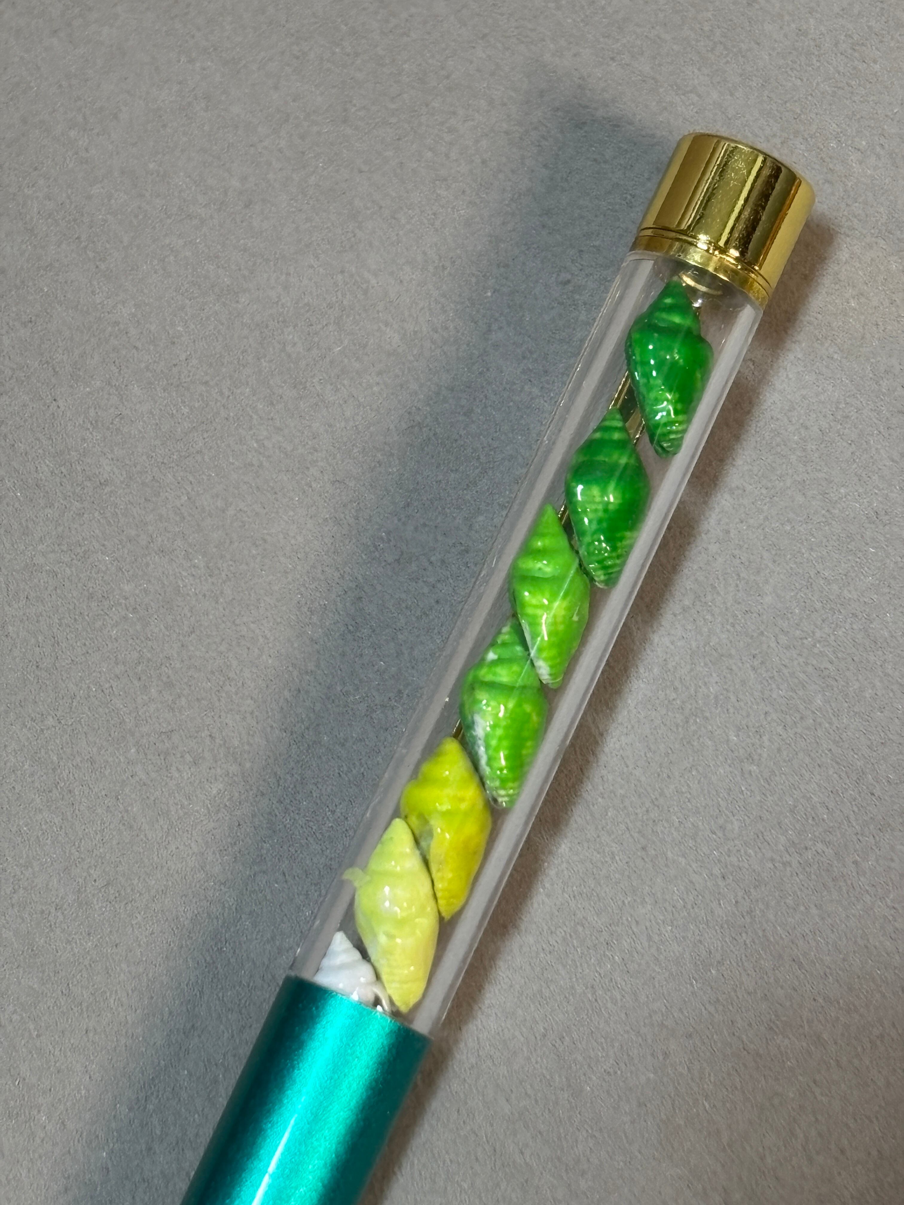 約1センチのチビシェルを一つずつカラーリングしてボールペンに閉じ込めました。