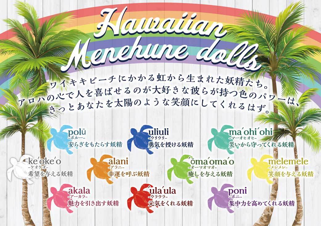 売り切れ続出!ワイキキに架かる虹の橋を渡ってやってきた、ハワイの妖精メネフネドールのオーナメント。紐付きなのでツリーや車にかけてもかわいい。それぞれの色に意味が込められているので、願いを込めた贈り物にもおすすめです。